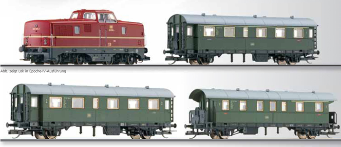 | set dieselové lokomotivy V80 a tří osobních vozů |