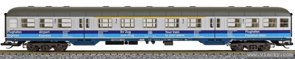 | modrý-bílý-šedý 1./2. tř. Airport Express „Ihr Zug zum Flug“ |