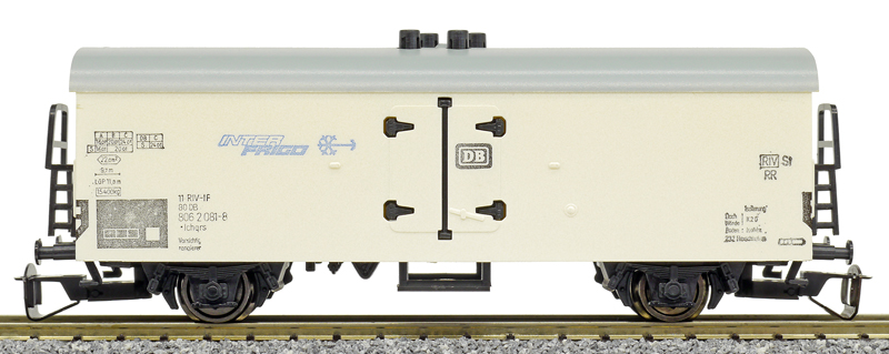 | nákladní chladící vůz bílý s šedou střechou „INTERFRIGO“ |