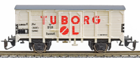 krytý nákladní vůz bílý s šedou střechou „TUBORG ØL“