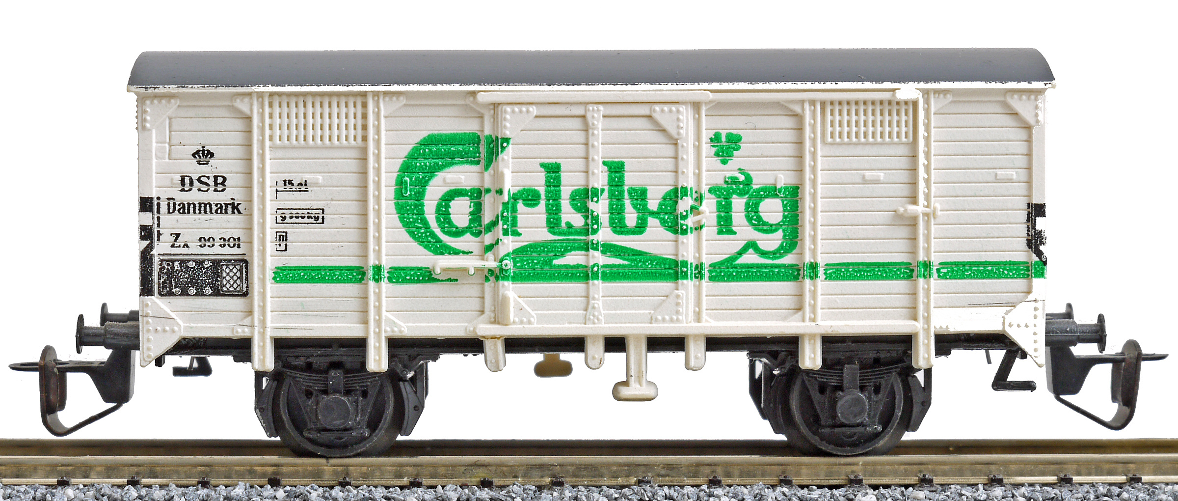 krytý nákladní vůz bílý s šedou střechou „Carlsberg“