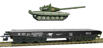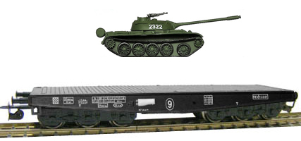 | set tří vozů vojenského transportu III s nákladem tanků T-54A, T-54B a T-72 |