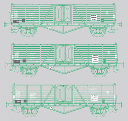 | set tří otevřených nákladních vozů „Wismut III” |