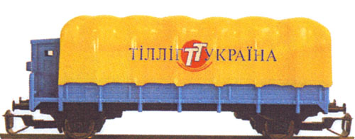 modrý nízkostěnný s plachtou a brzdařskou budkou