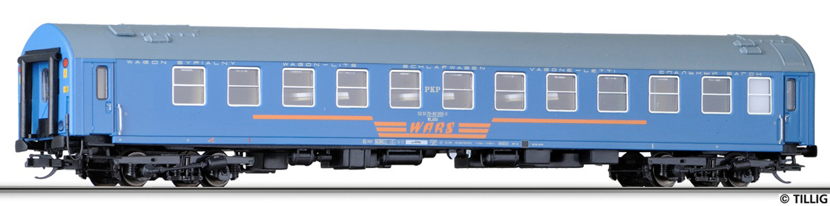 | lůžkový vůz modrý s šedou střechou „WARS“ |
