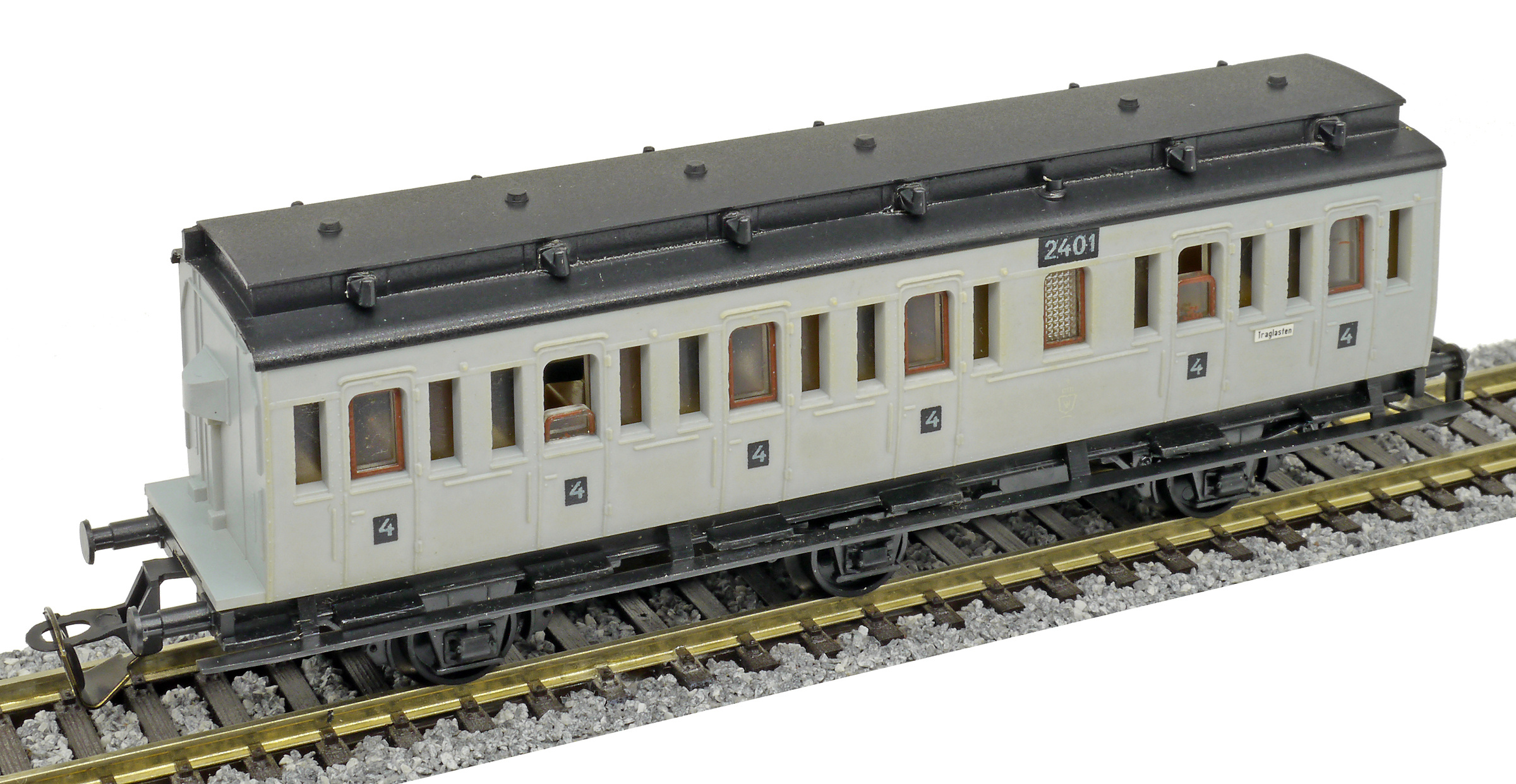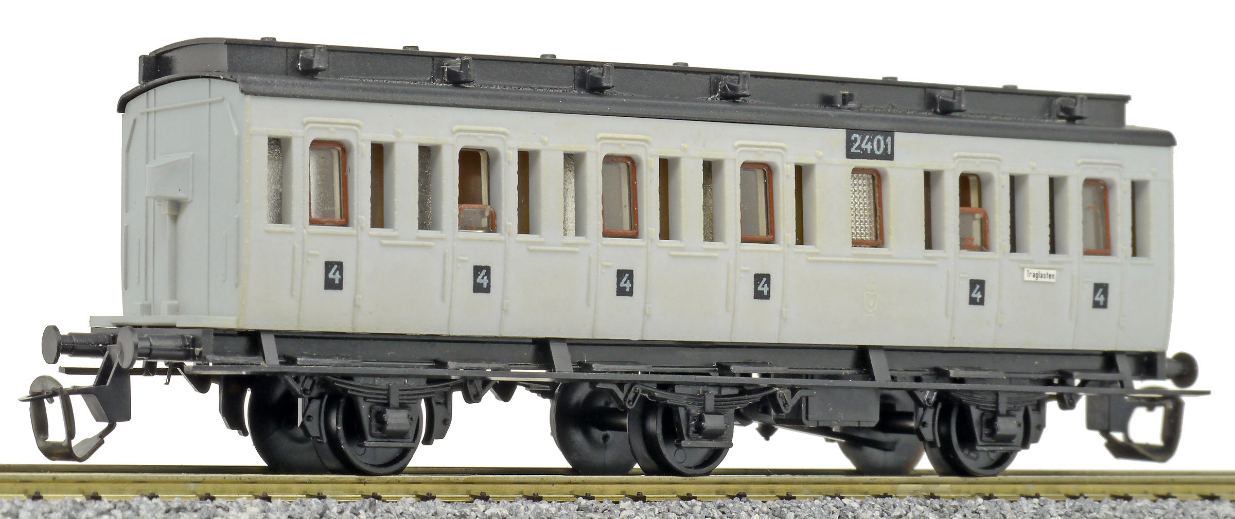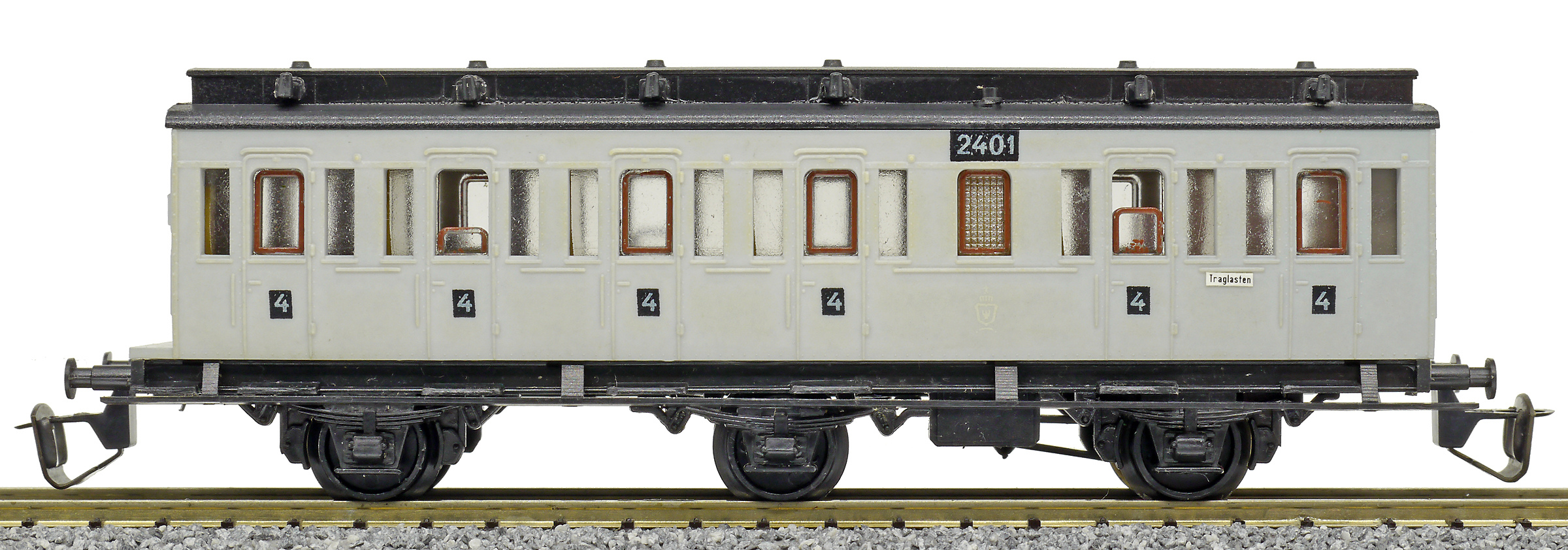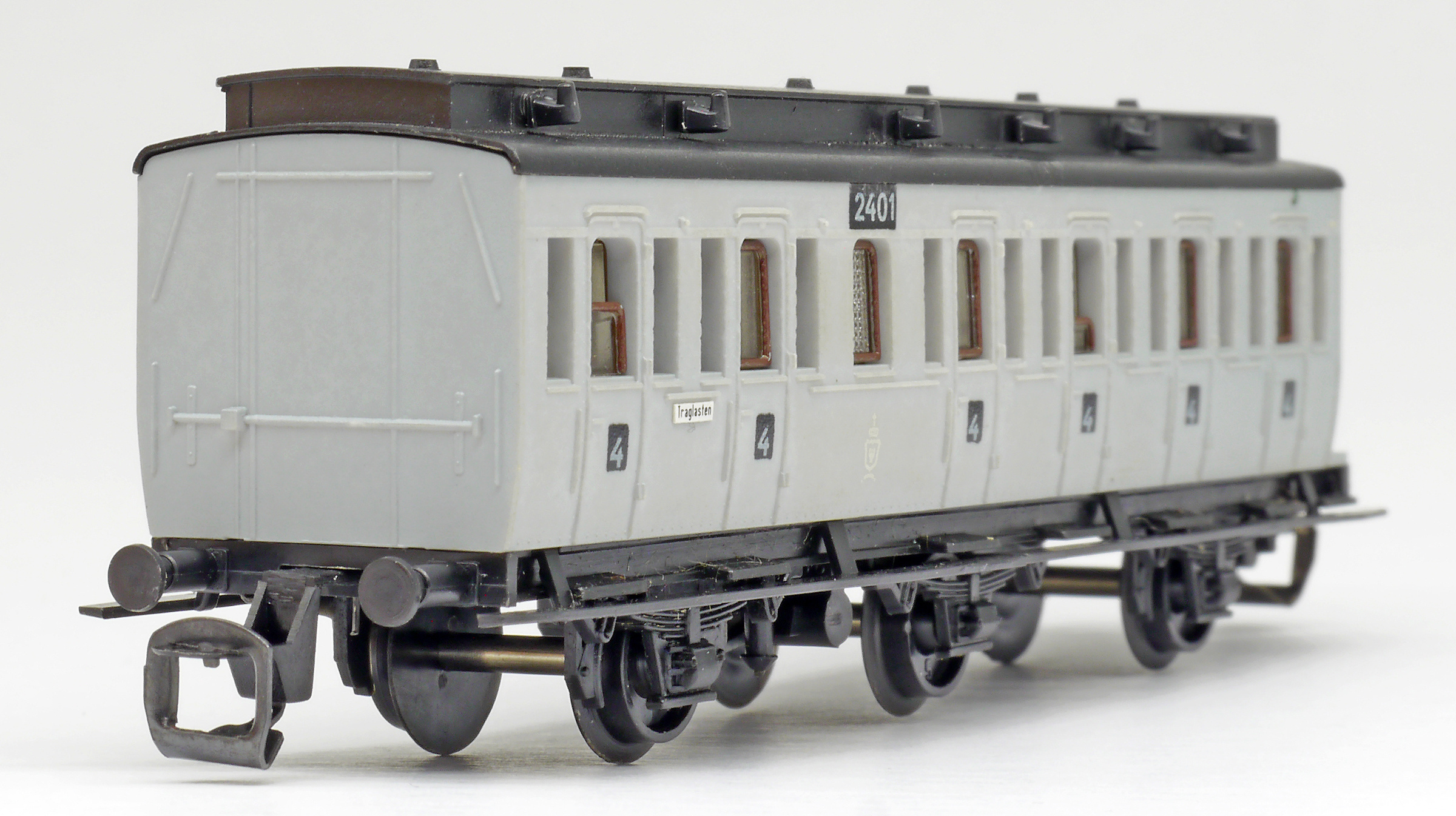 oddílový osobní vůz šedý s černou střechou 4. tř.
