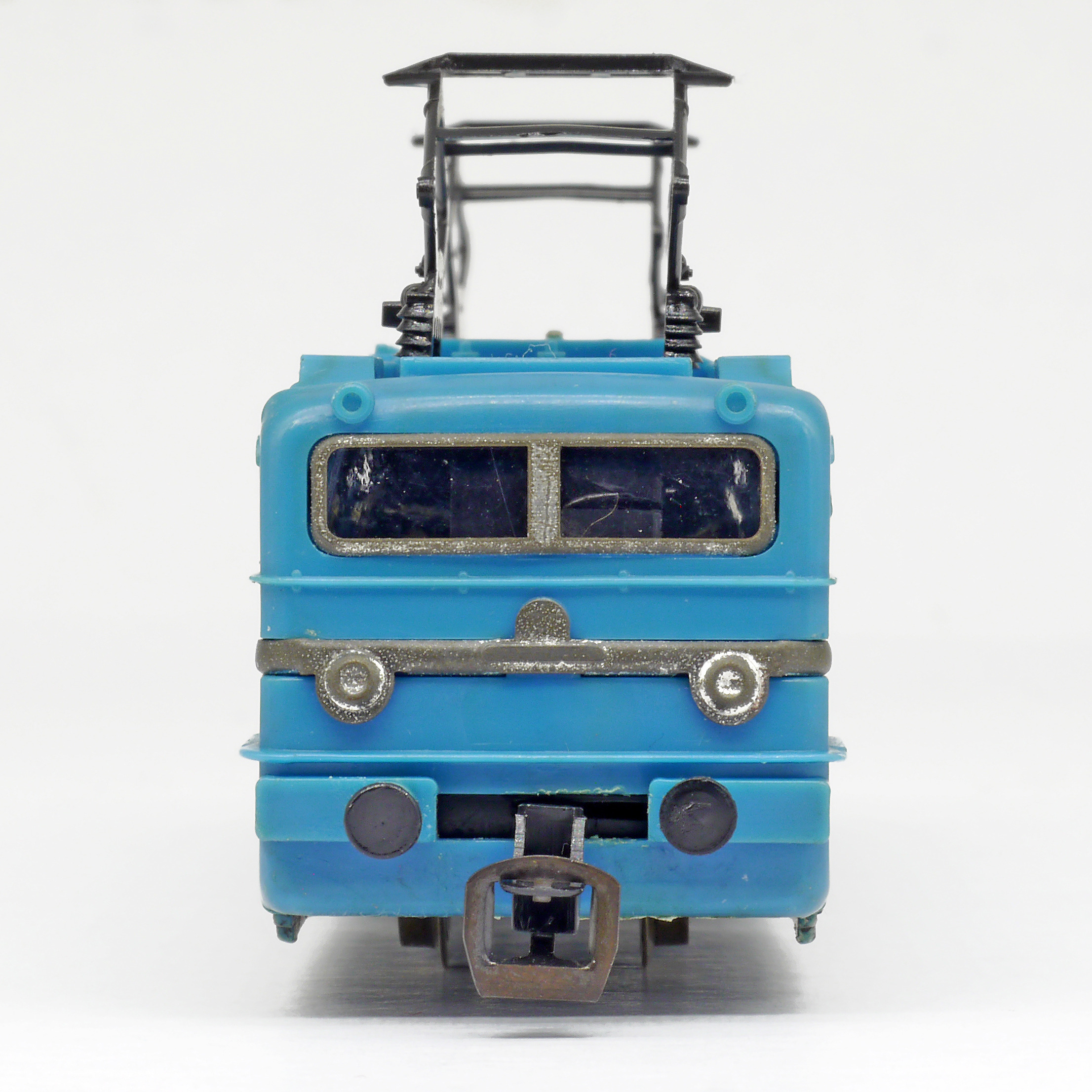 | elektrická lokomotiva, různé barvy plastu, černé plastové pantografy a černá imitace pojezdu |