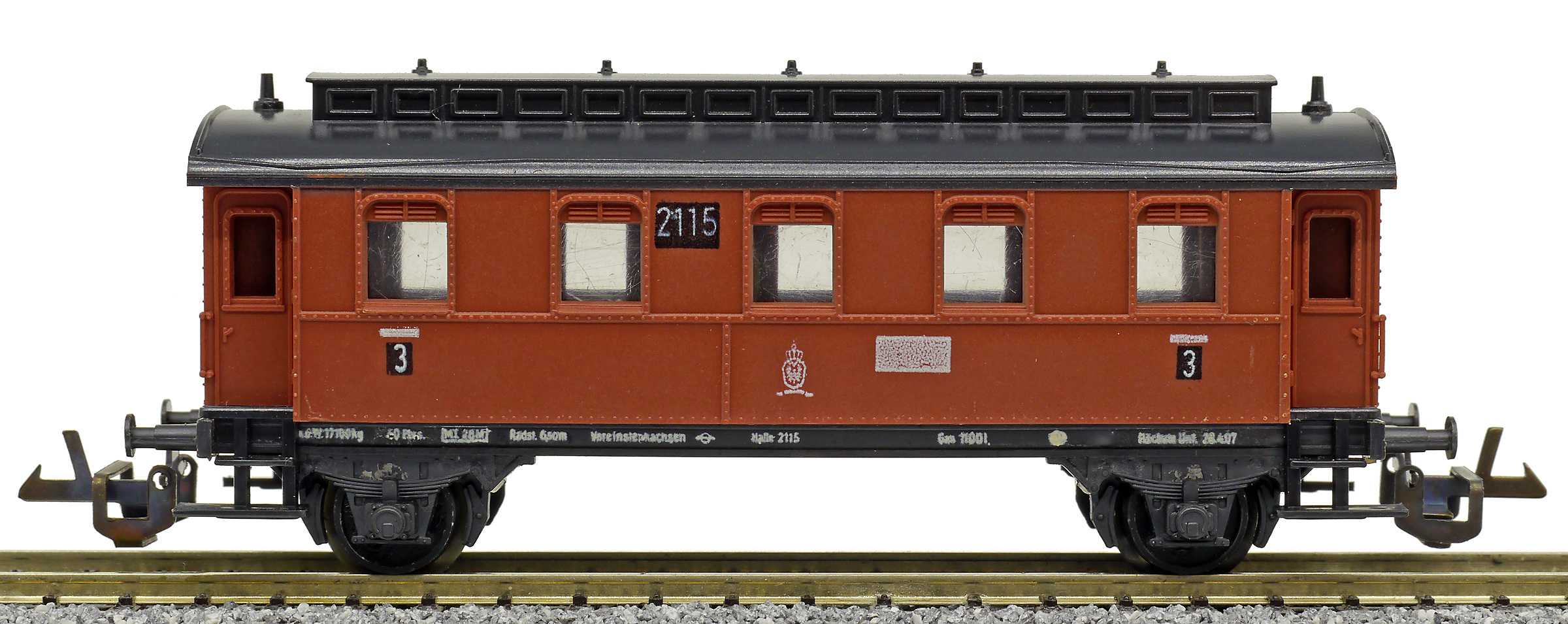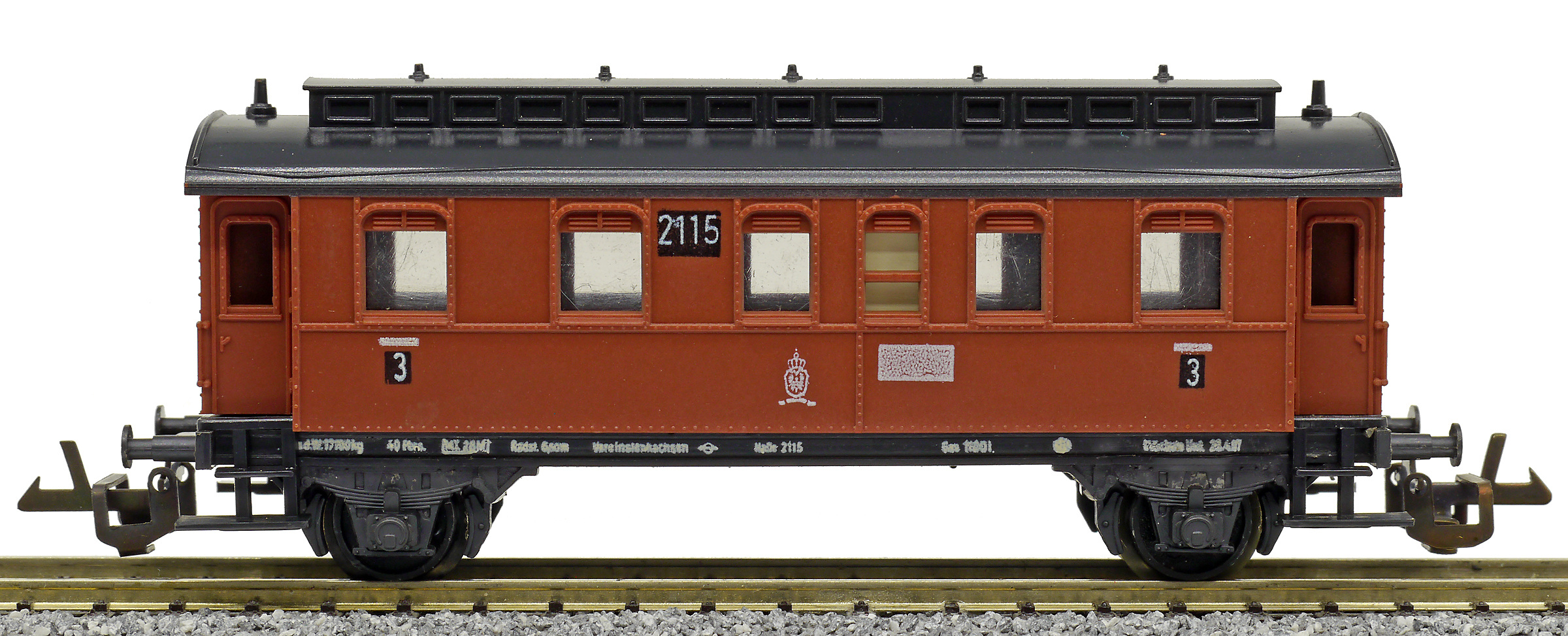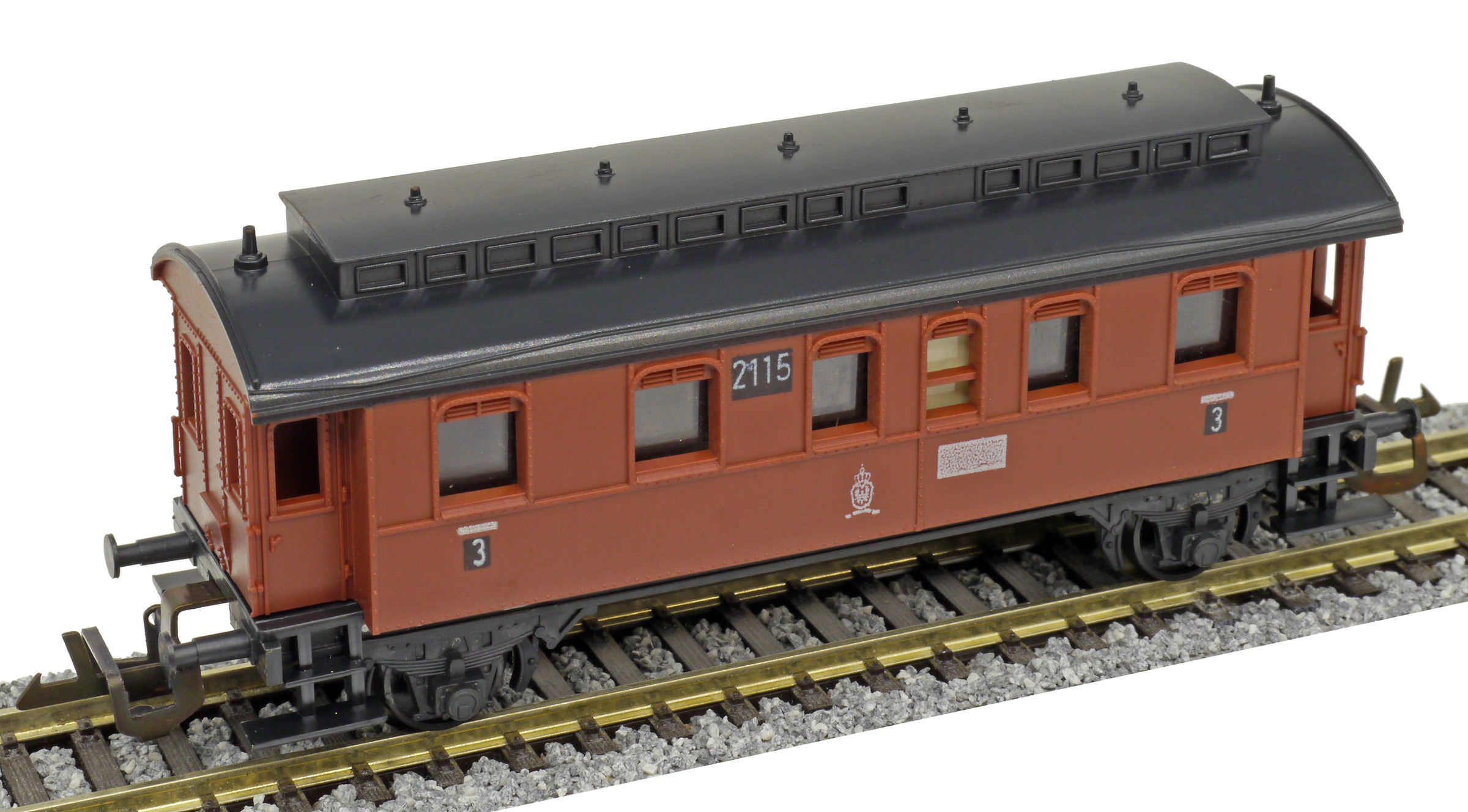 osobní vůz červený s černou střechou 3. tř.