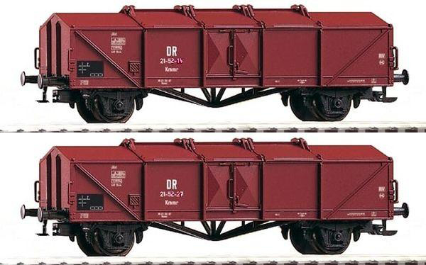 | set dvou červenohnědých nákladních vozů s klapkami |
