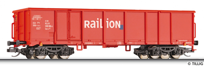 | vysokostěnný nákladní vůz červený „Railion“ |