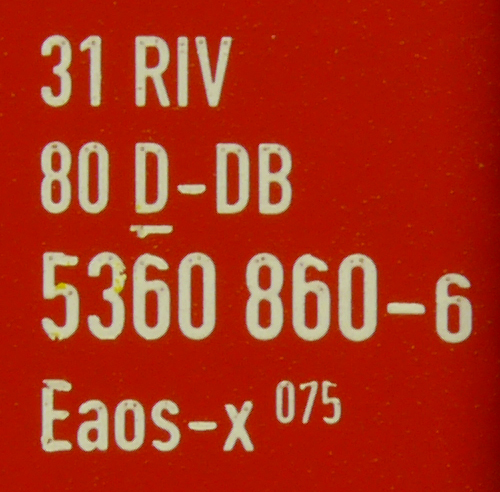 | • 31 80 5360 860-6 | → | nákladní, s podvozky, pevný rozchod, ve vlastnictví železniční správy, RIV, PPV |