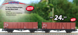 měřítko 1:120 - rozchod kolejí 12 mm kinematika krátkého spřáhla (KKK) podle normy NEM 358 2x2 - celkový počet náprav nebo rozložení náprav