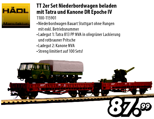 | set dvou nízkostěnných vozů s nákladem vojenské techniky |