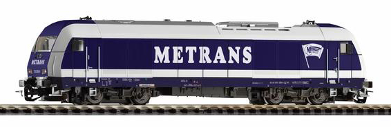 Popis   dieselová lokomotiva tmavě modrá-bílá, černý pojezd „Metrans”