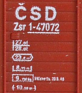měřítko 1:120 - rozchod kolejí 12 mm nenormované uchycení spřáhla 5x83 mm - celková délka modelu přes nárazníky 5x2 - celkový počet náprav nebo rozložení náprav
