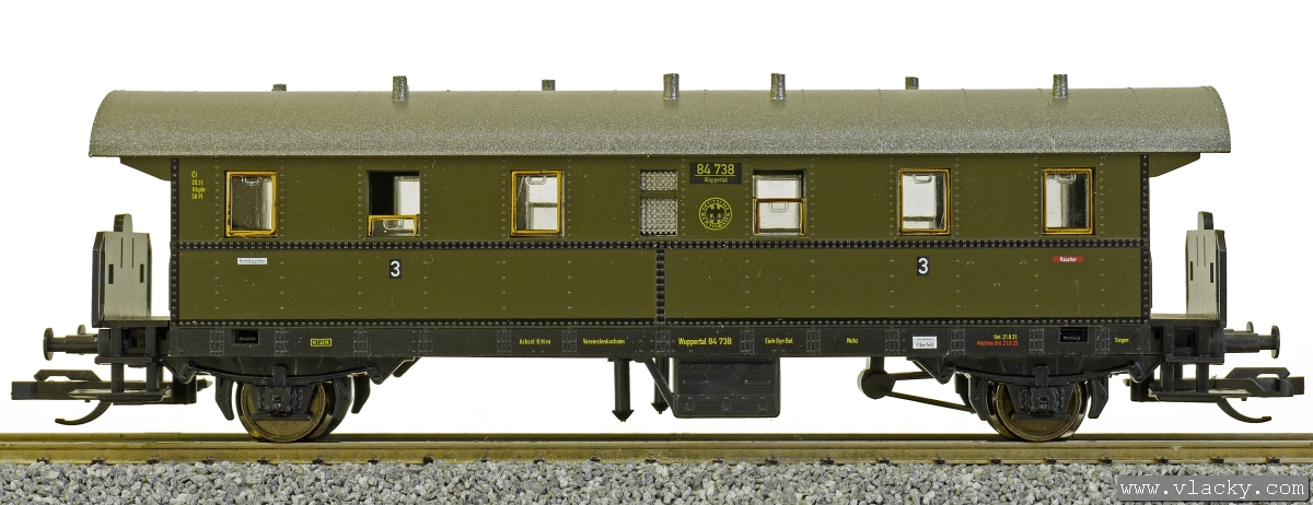 osobní vůz zelený se světle šedou střechou 3. tř.