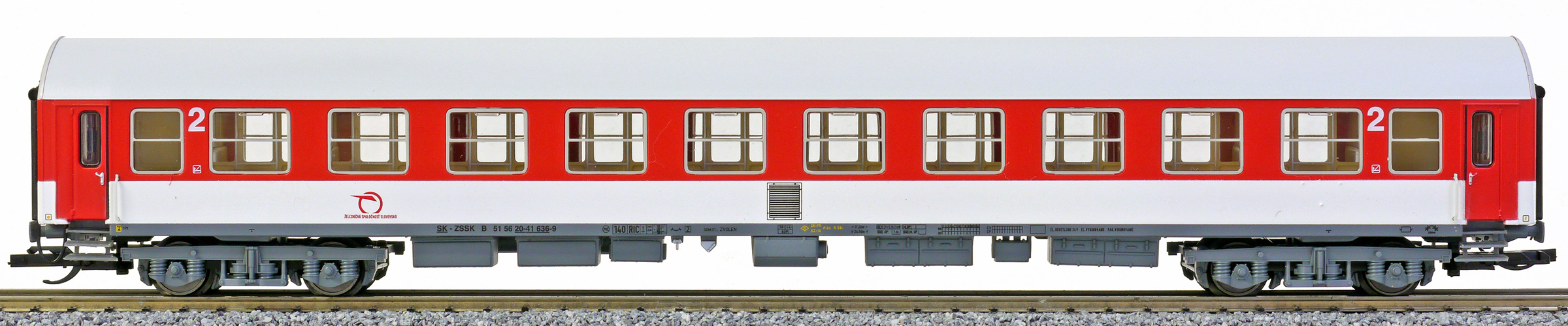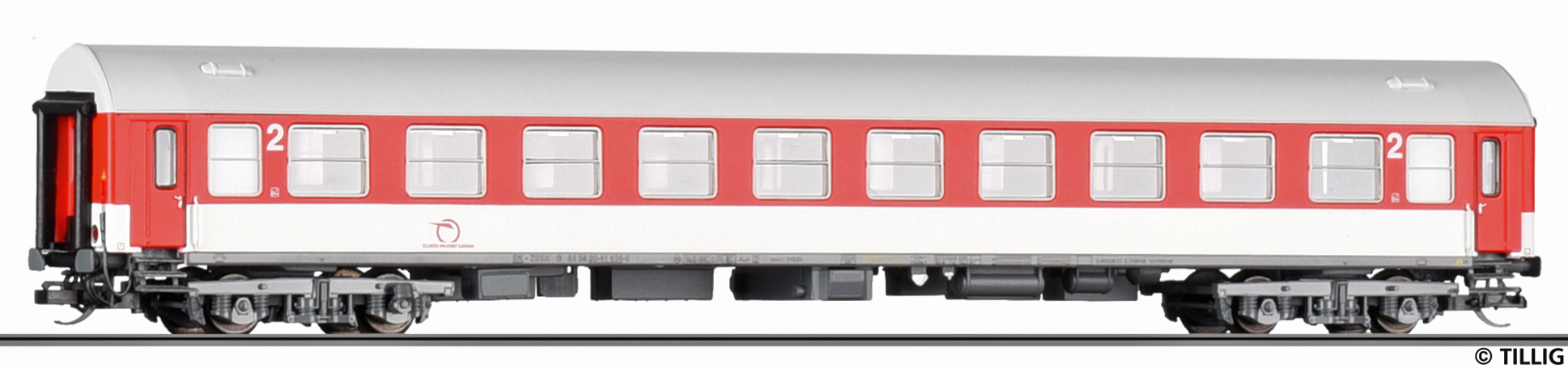 | rychlíkový vůz červený-bílý s šedou střechou 2. tř. |