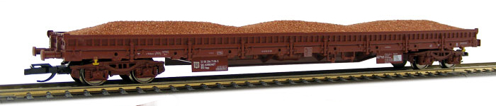 Popis   nízkostěnný nákladní vůz červenohnědý s nákladem štěrku