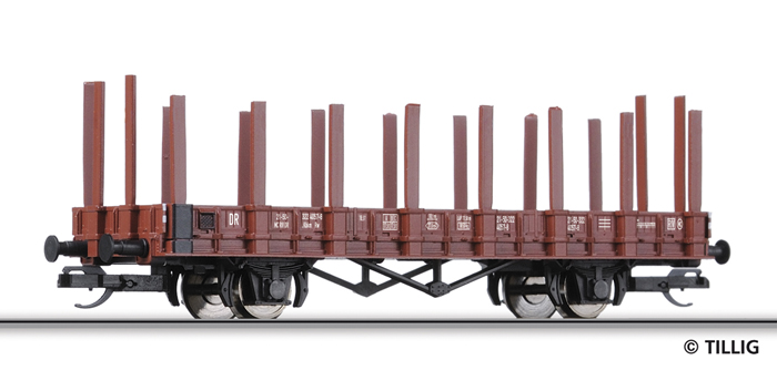 | • Kbkm | - | plošinový vůz dvounápravový běžné stavby se sklopnými nízkými stěnami a s krátkými klanicemi |