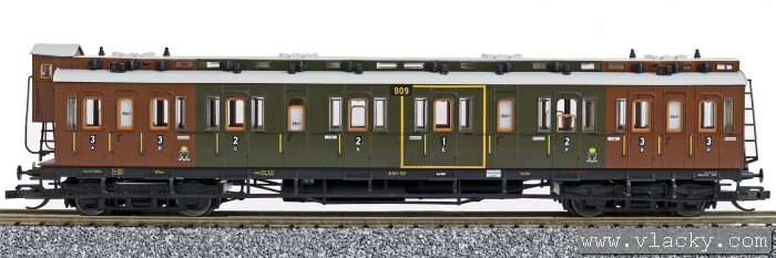 | oddílový osobní vůz zelený-hnědý se světle šedou střechou oddílový 1./2./3. tř. |