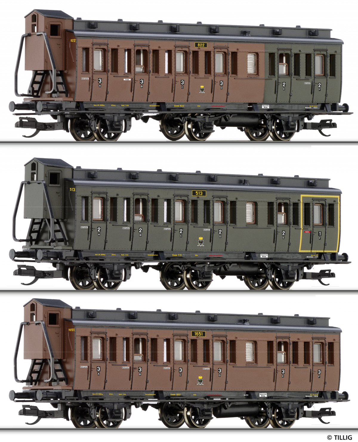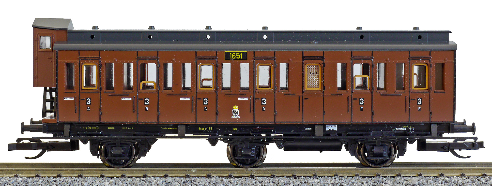 Popis   oddílový osobní vůz červenohnědý s černou střechou a brzdařskou budkou 3. tř.
