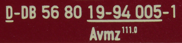 | • 56 80 19-94 005-1 | → | maximální rychlost 161 km/h a více, vytápění: ~1000 V |