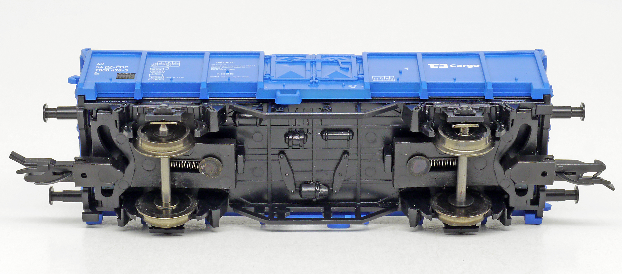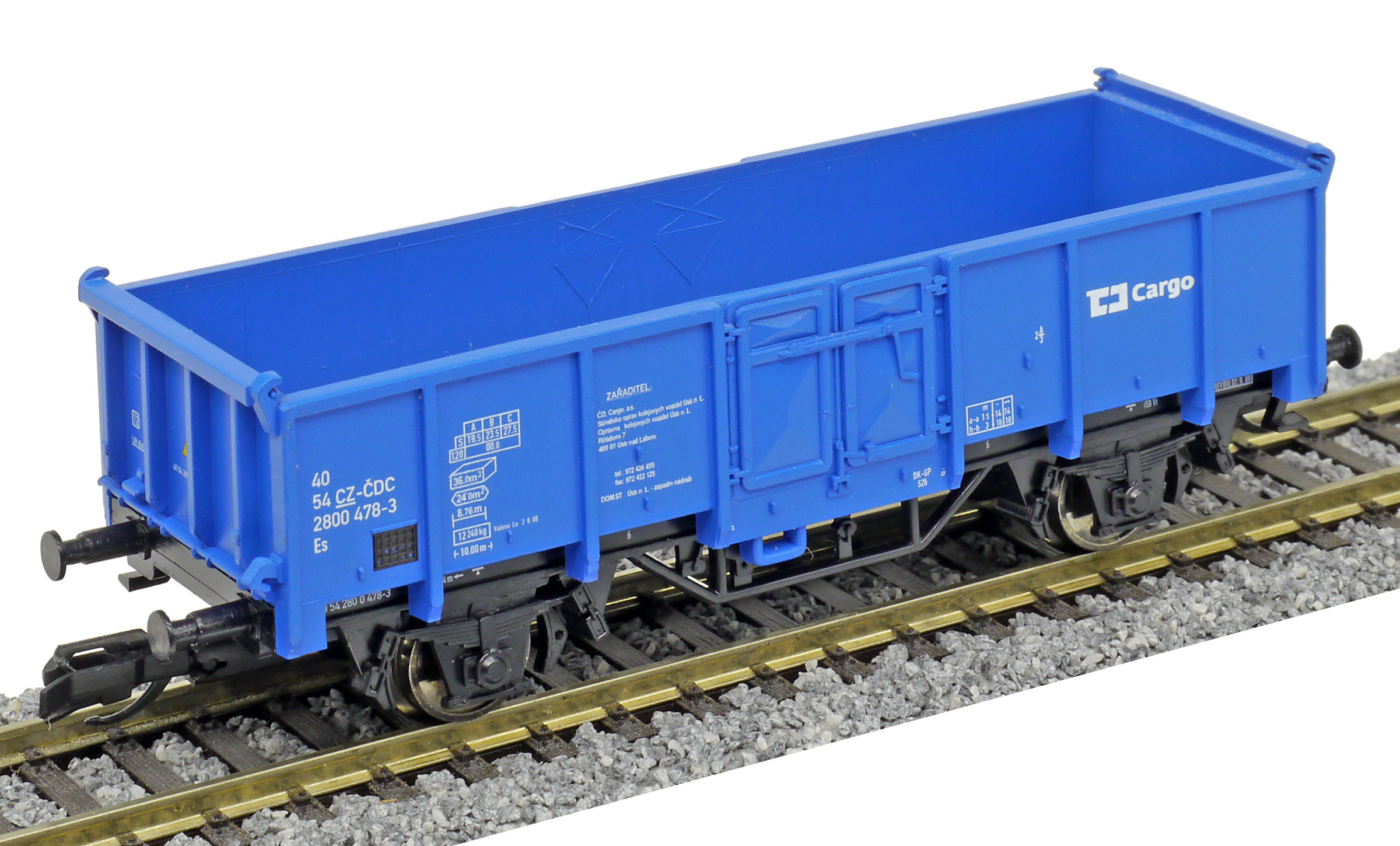 měřítko 1:120 - rozchod kolejí 12 mm kinematika krátkého spřáhla (KKK) podle normy NEM 358 83 mm - celková délka modelu přes nárazníky