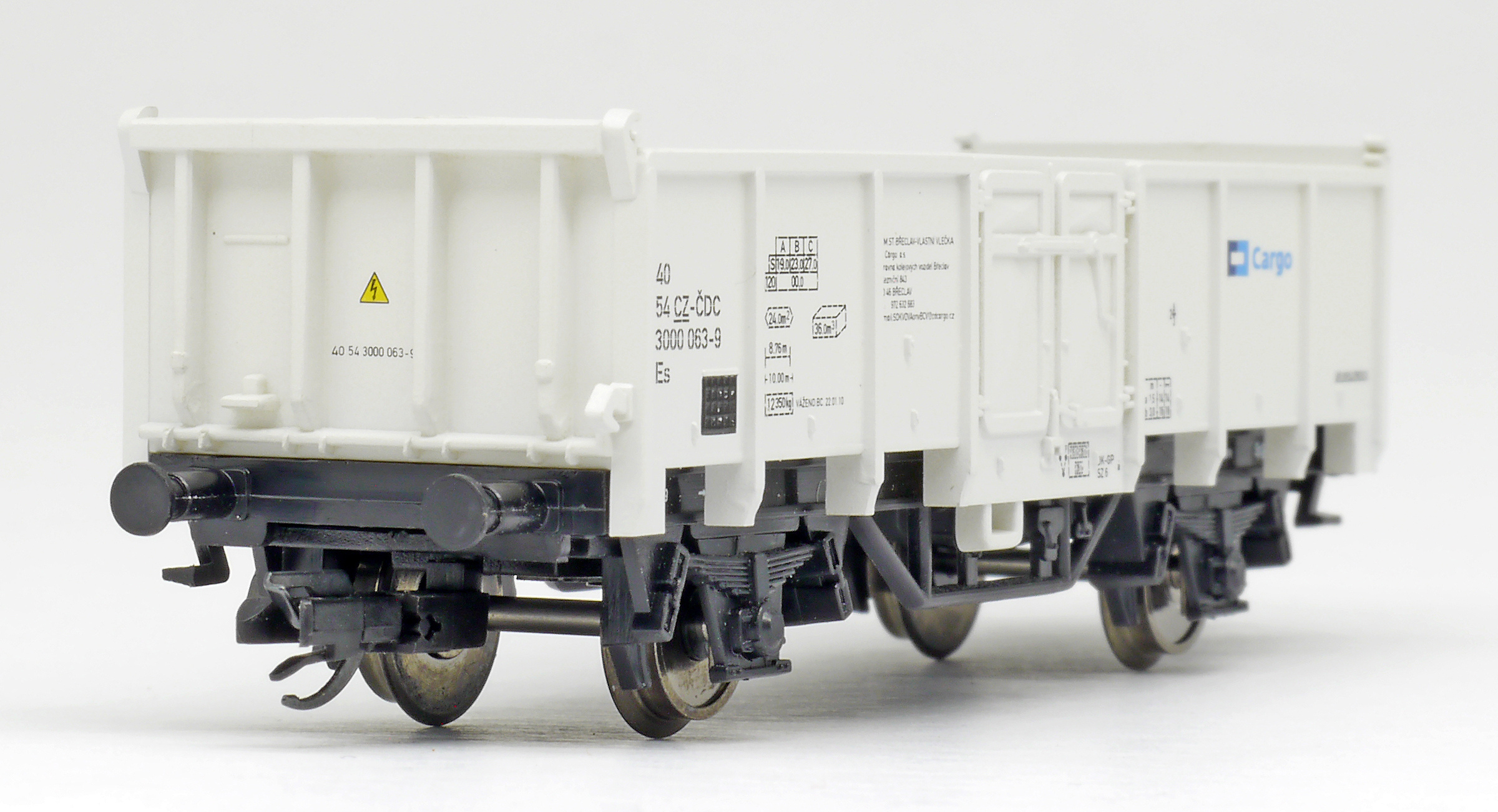 měřítko 1:120 - rozchod kolejí 12 mm kinematika krátkého spřáhla (KKK) podle normy NEM 358 253 mm - celková délka modelu přes nárazníky 3x2 - celkový počet náprav nebo rozložení náprav 260 g - hmotnost brutto - model včetně prodejního obalu 54 g - hmotnost netto - pouze model