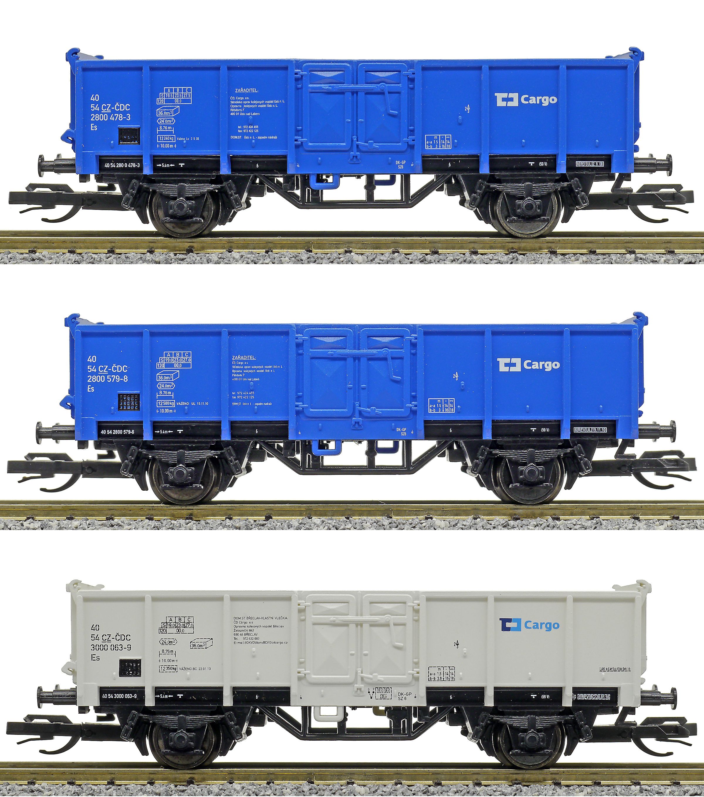 | set tří nákladních otevřených vozů |