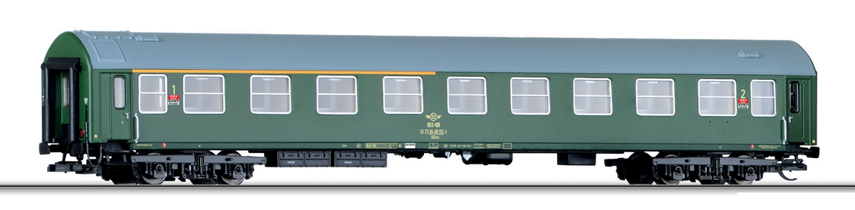 | rychlíkový vůz zelený s šedou střechou 1./2. tř. |