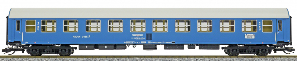 Popis   lehátkový vůz modrý s šedou střechou 2. tř.