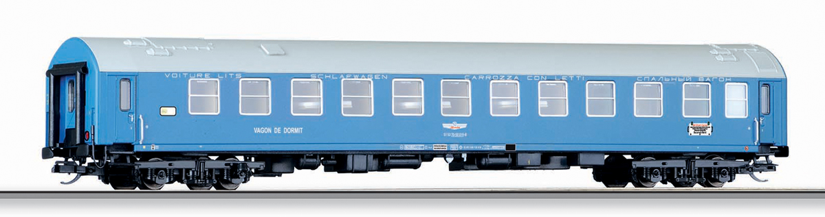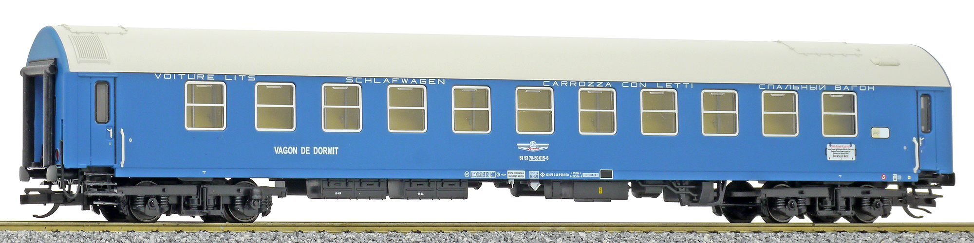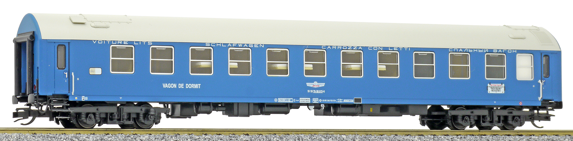 Popis   lůžkový vůz modrý s šedou střechou 2. tř.