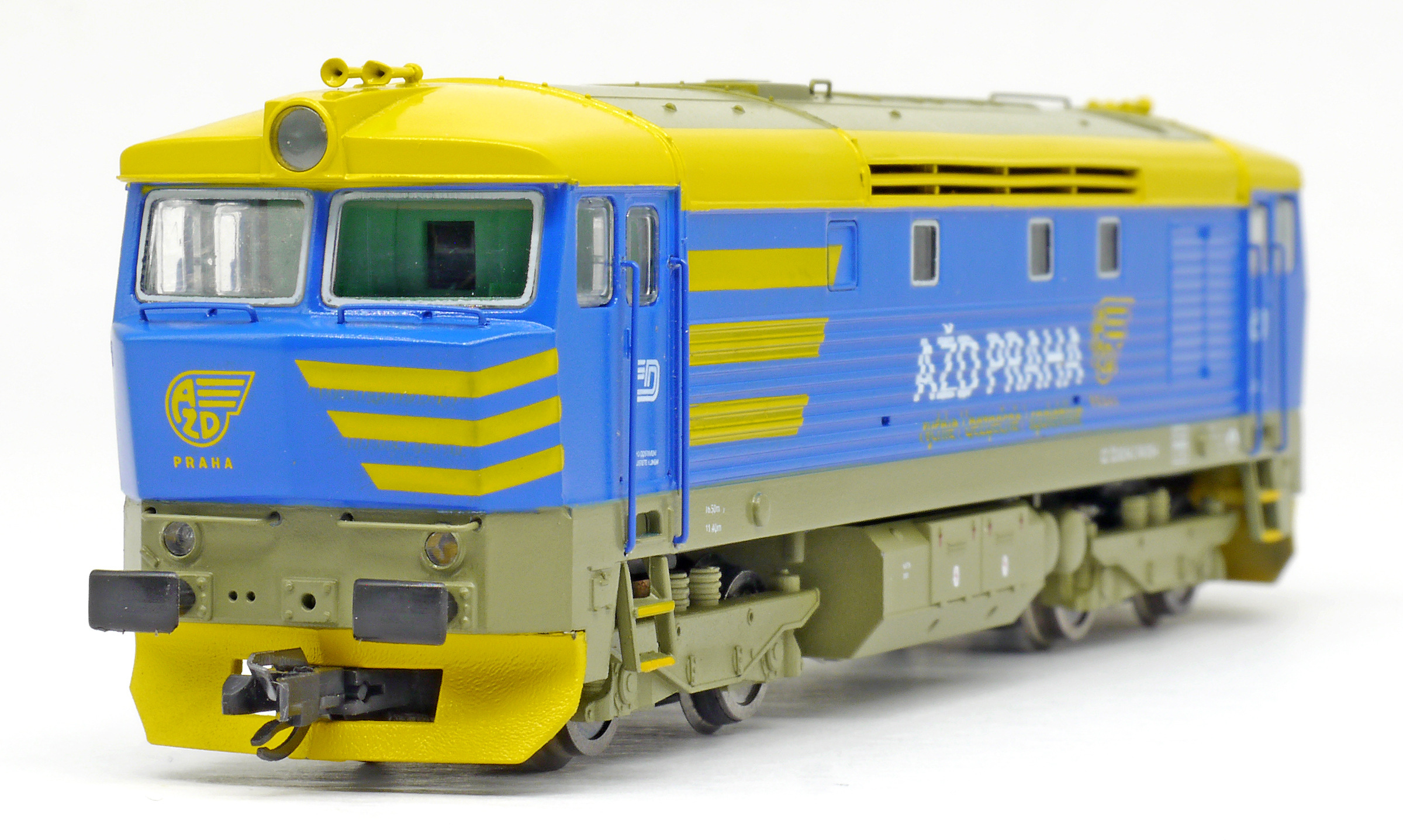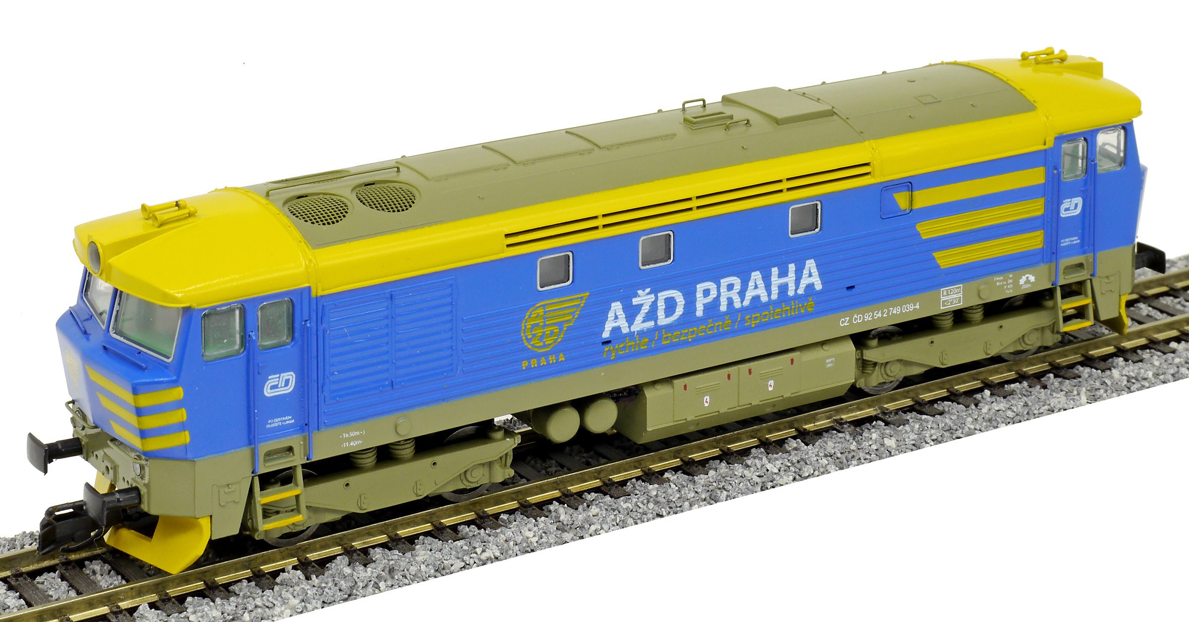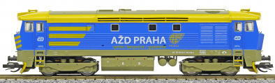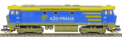 Popis   dieselová lokomotiva v barevném reklamním nátěru AŽD