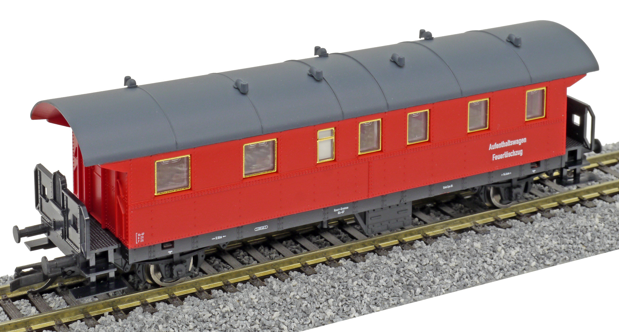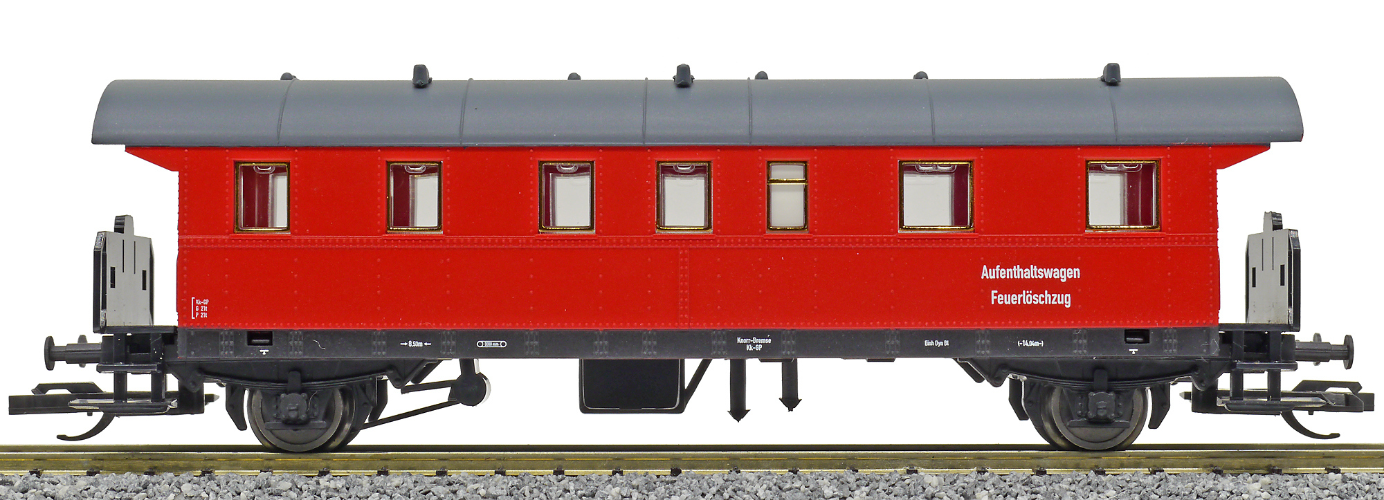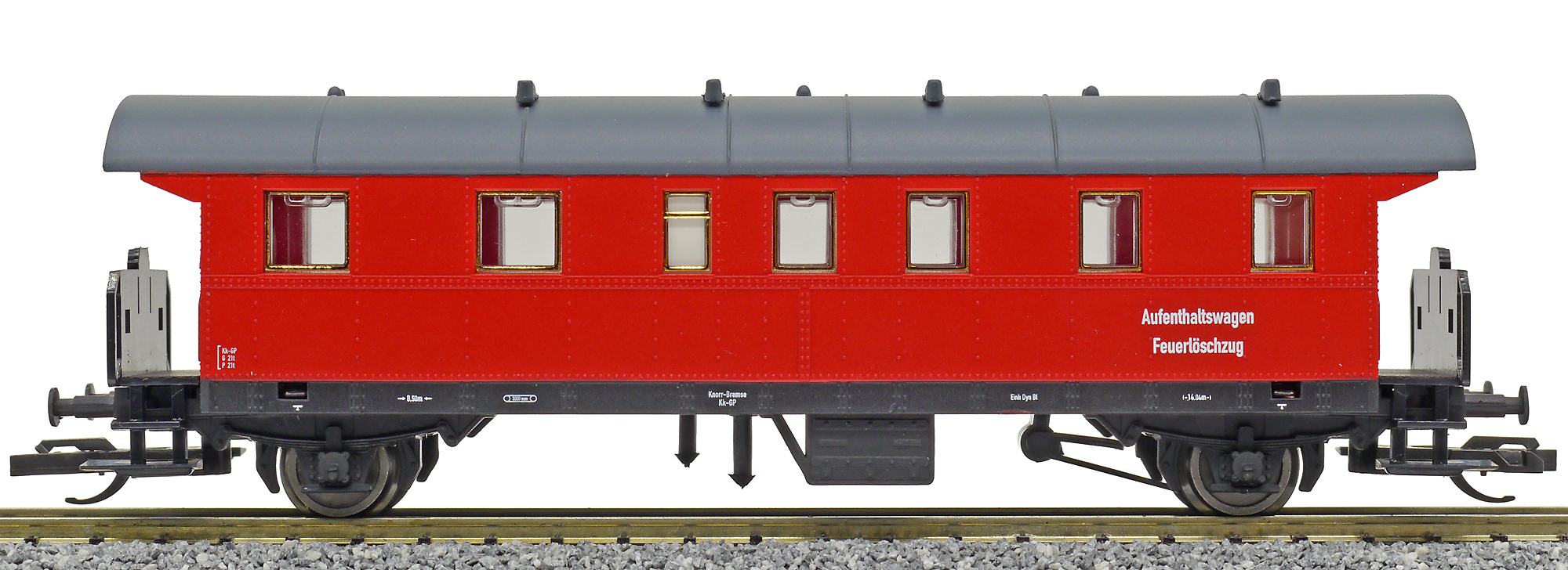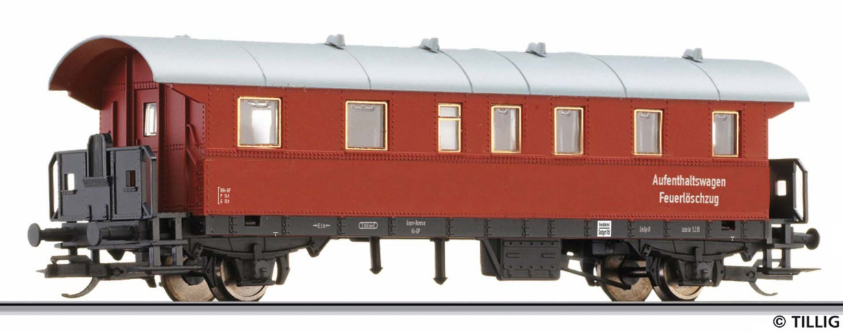 | osobní vůz červený s šedou střechou do požárního vlaku |