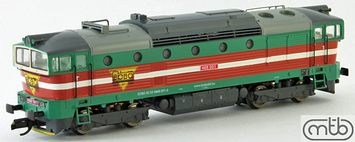 Popis   dieselová lokomotiva v barevném schematu maďarského soukromého dopravce BOBO Kft.