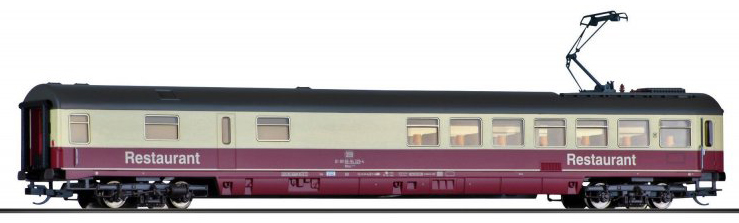 | vínový-slonová kost s tmavě šedou střechou, pantograf |