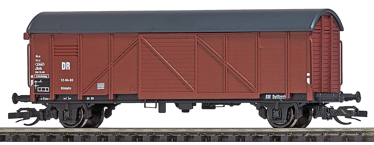 | krytý nákladní červenohnědý s tmavě šedou střechou, konstrukce „Leipzig“ |