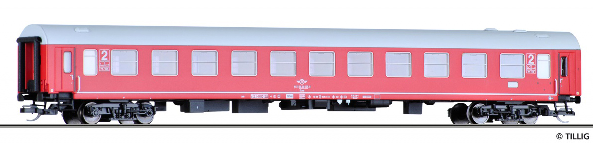 | lehátkový vůz červený s šedou střechou 2. tř. |