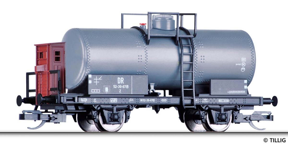 | cisternový vůz světle šedý s brzdařskou budkou |