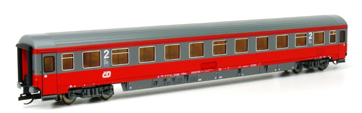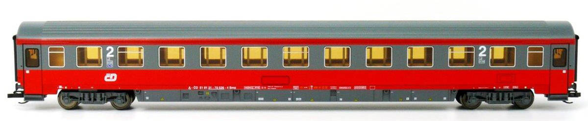 | rychlíkový vůz červený-tmavěšedý v barvách ÖBB 2. tř. |