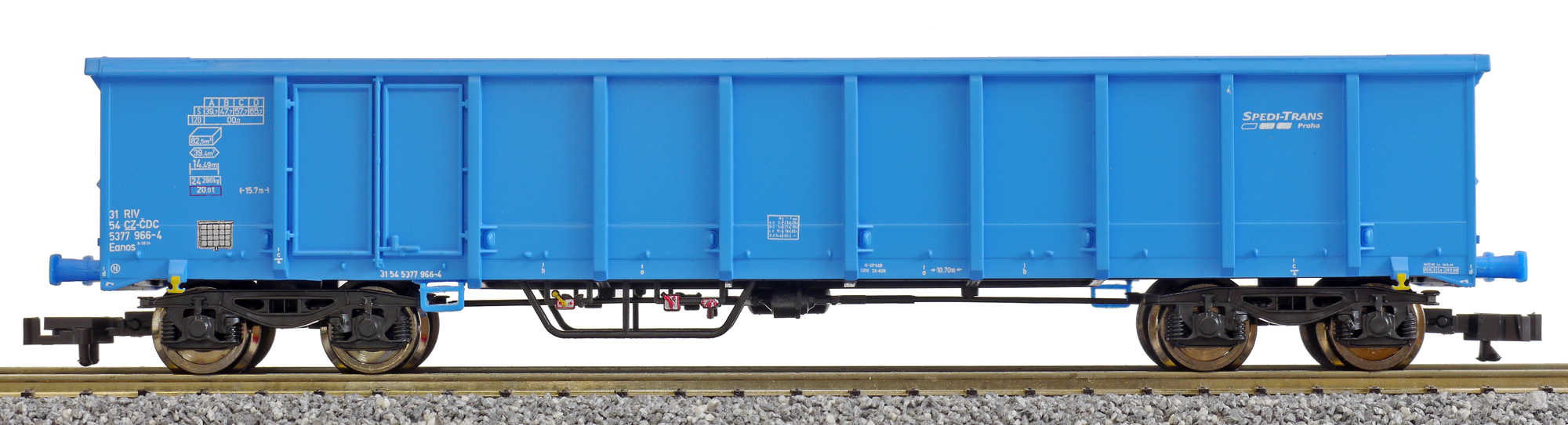 měřítko 1:120 - rozchod kolejí 12 mm kinematika krátkého spřáhla (KKK) podle normy NEM 358 264 mm - celková délka modelu přes nárazníky 2x4 - celkový počet náprav nebo rozložení náprav 270 g - hmotnost brutto - model včetně prodejního obalu 58 g - hmotnost netto - pouze model