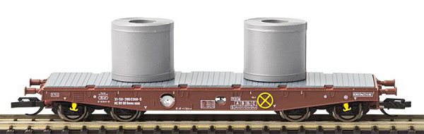 | plošinový vůz hnědý s nákladem dvou cívek |