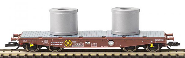 | plošinový vůz hnědý s nákladem dvou cívek |