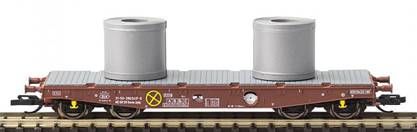 | plošinový vůz hnědý s nákladem dvou cívek |