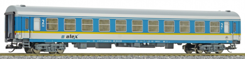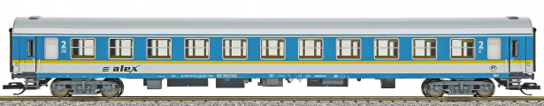 | rychlíkový vůz tyrkysový-bílý s šedou střechou 2. tř. |