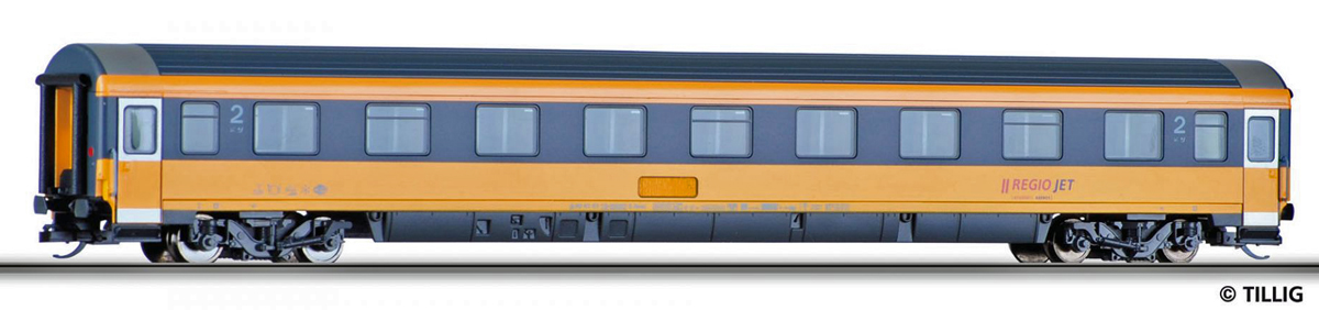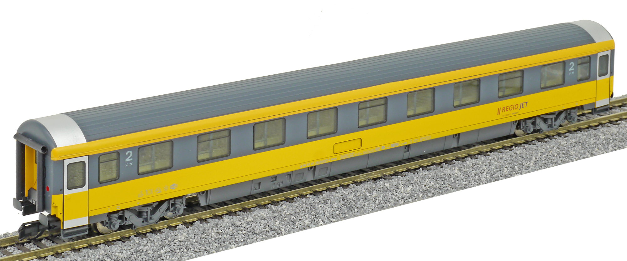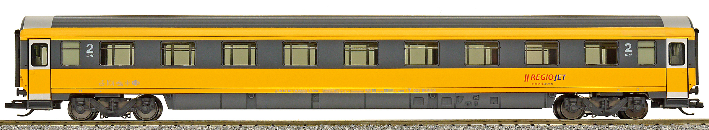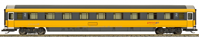| rychlíkový vůz v barvách „RegioJet“ 2. tř. |