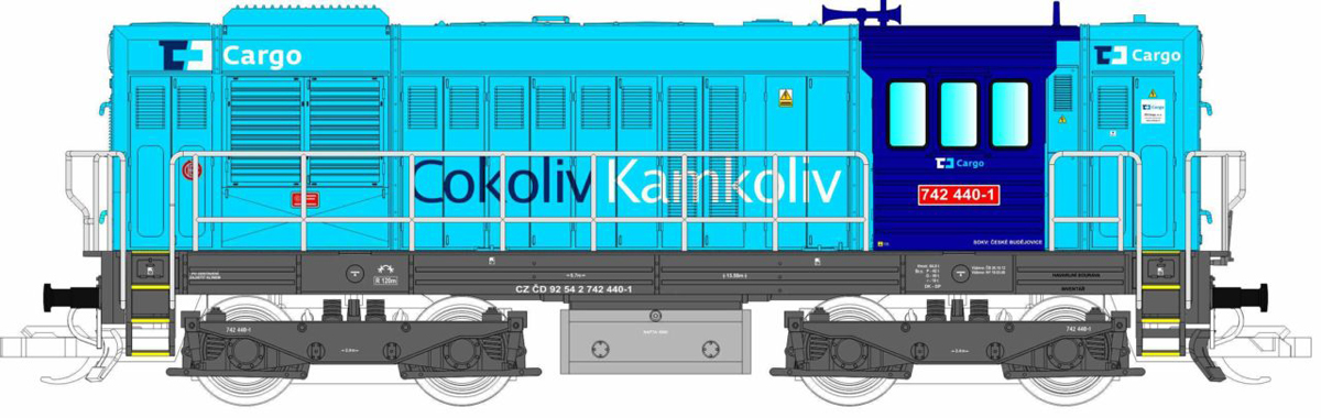 měřítko 1:120 - rozchod kolejí 12 mm osvětlení - 3 reflektory vpředu, 2 světla vzadu, přepínatelné podle směru jízdy 4 hnané nápravy 2 bandážované nápravy kinematika krátkého spřáhla (KKK) podle normy NEM 358 digitální rozhraní podle NEM 662 s konektorem Next18 113 mm - celková délka modelu přes nárazníky 4 - celkový počet náprav nebo rozložení náprav
