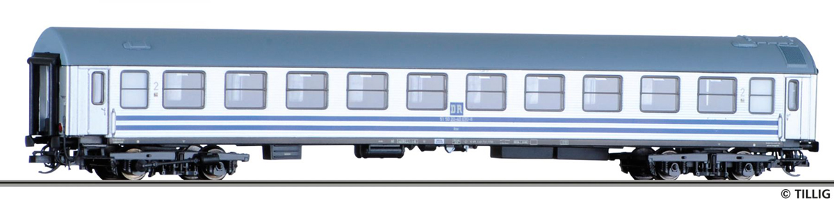 | rychlíkový vůz stříbrný se světle šedou střechou „Nirosta“ 2. tř. |