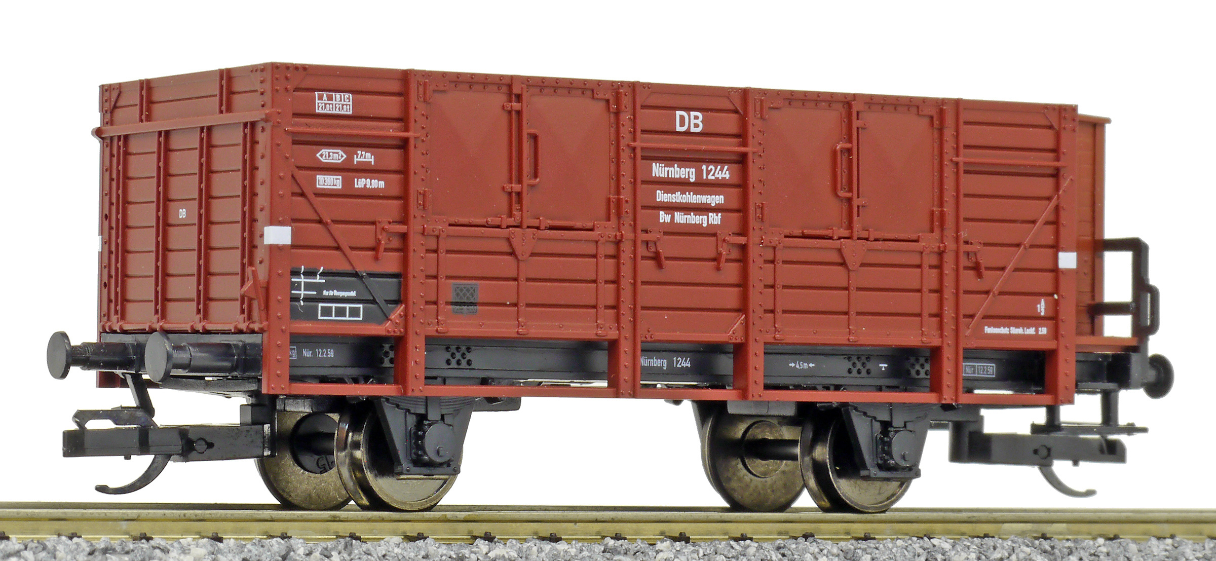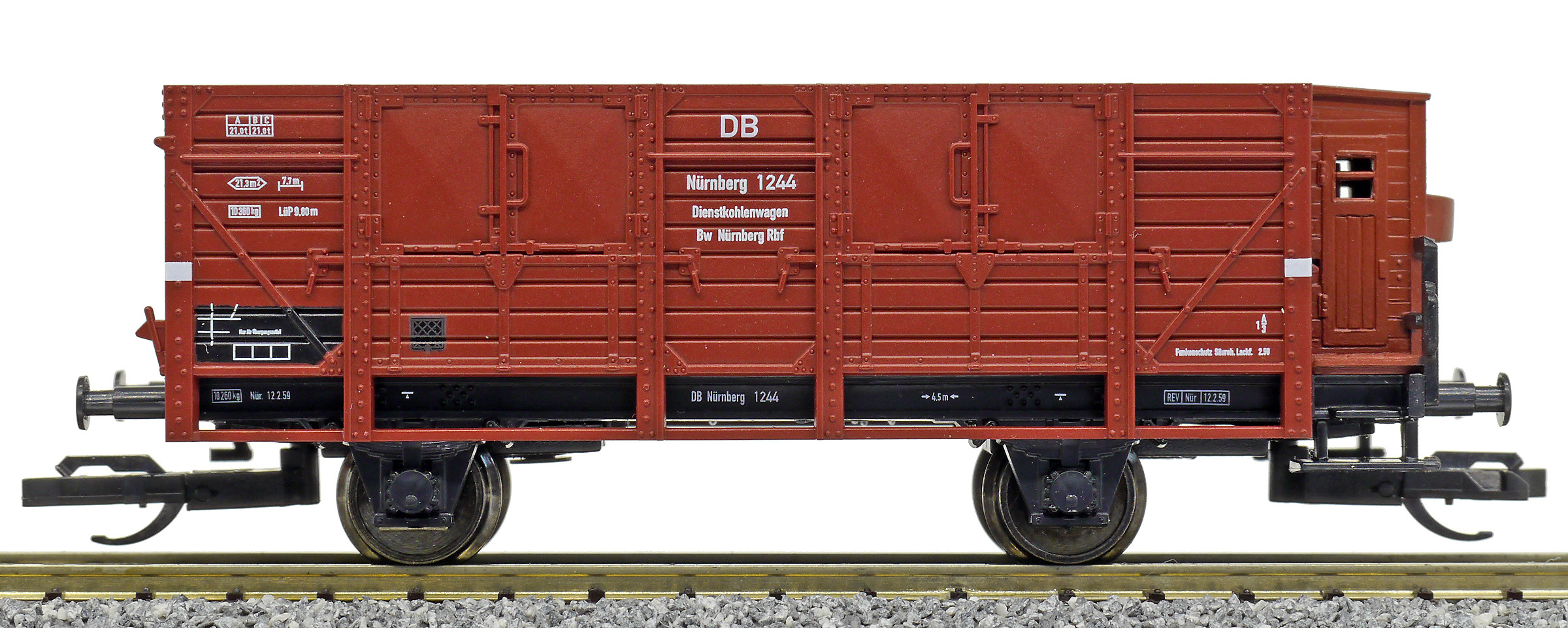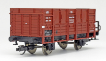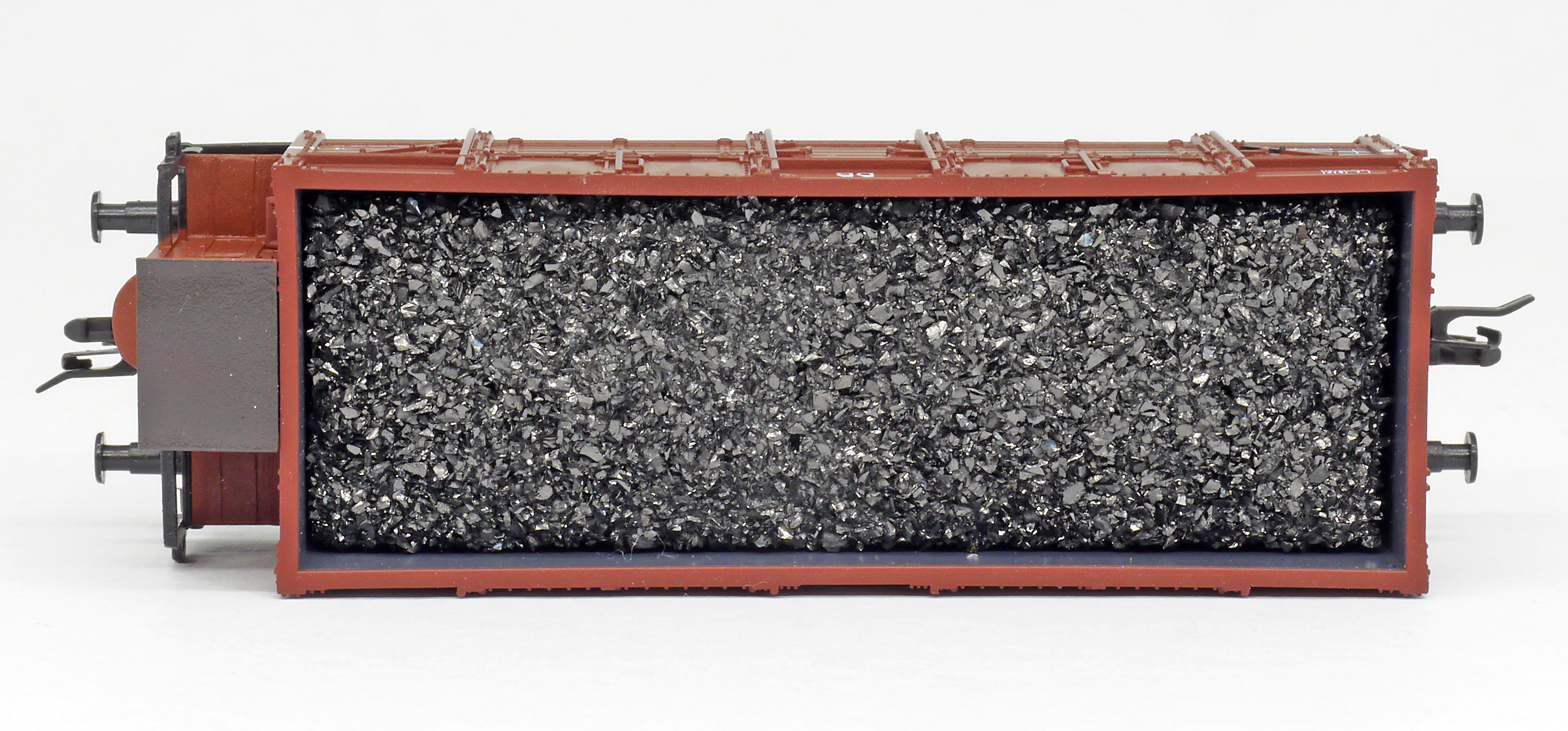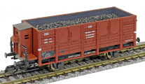 | otevřený nákladní vůz červenohnědý s nákladem uhlí |