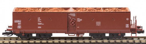 | samovýsypný vůz červenohnědý s nákladem železného šrotu |